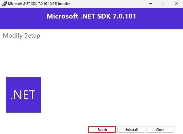 Repair Microsoft .NET SDK