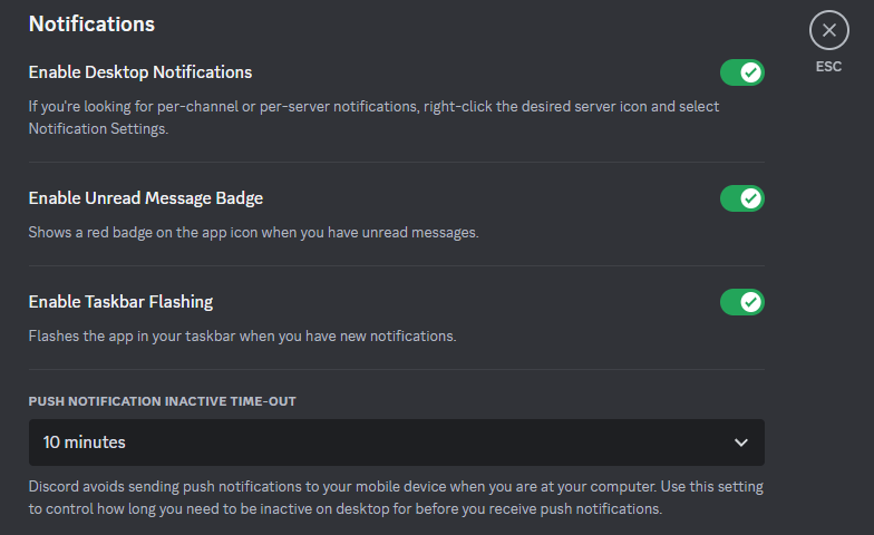 Disable Notifications: Inside the Notifications settings, you'll see various customization options. To completely silence Discord's desktop notifications, flip the switch next to "Enable Desktop Notifications" to the OFF position.