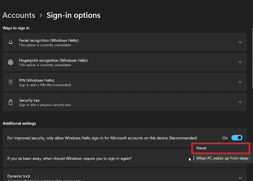 In the Windows Start Menu, type "Sign-in options" and press Enter. This will lead you to your system's sign-in settings. Navigate to the "Additional settings" section and look for the feature that reads, "If you have been away, when should Windows require you to sign in again?" Turn off this option to disable the re-login requirement. For example, this can be particularly useful if you step away from your computer frequently but don't want to re-enter your password each time.