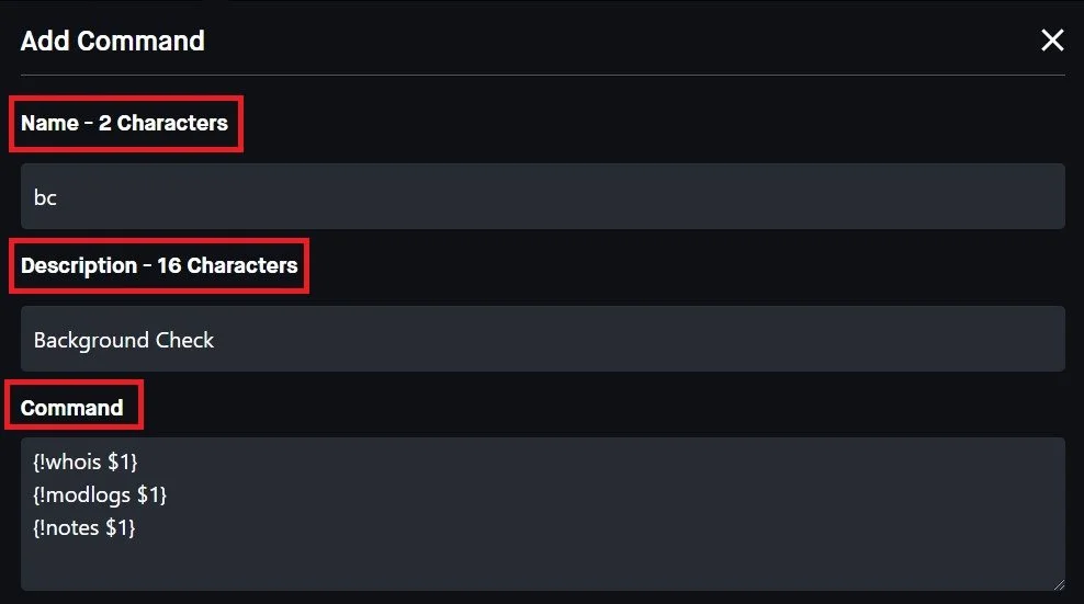 Your Advanced Options let you create a command cooldown, after which you can use the command again for another user. The Delete After command will trigger the bot to automatically delete the command response after a certain amount of seconds. After going through these settings, select Add Command, which will save your changes, and add the Background Check custom command to your Discord server.