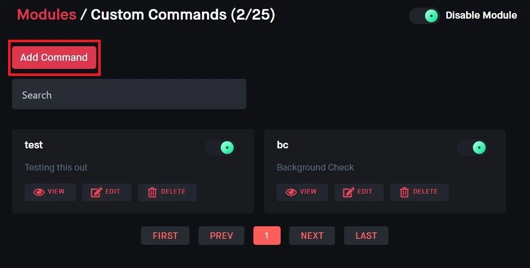 Under Modules, make sure to enable the Custom Commands module and then navigate to it’s settings.