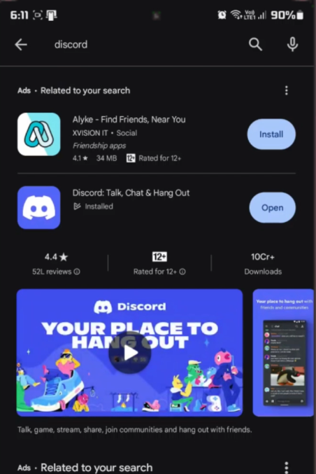 Search for Discord: Type 'Discord' in the search bar of the app store.