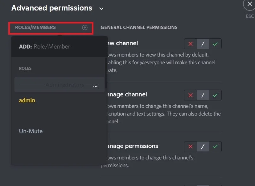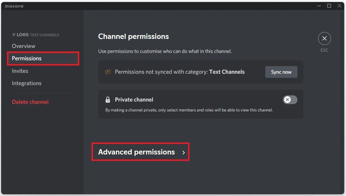 In your channel Settings, navigate to the Permissions tab. Open the Advanced Permissions.