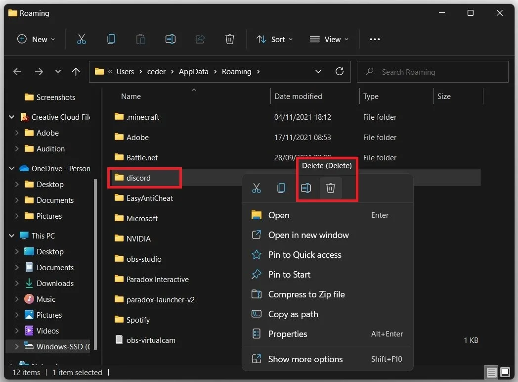 Search for %AppData%. After hitting enter, a new folder will open up. Ensure you’re in the AppData, and then Roaming section of the folder. You should then proceed to delete the existing Discord folder.
