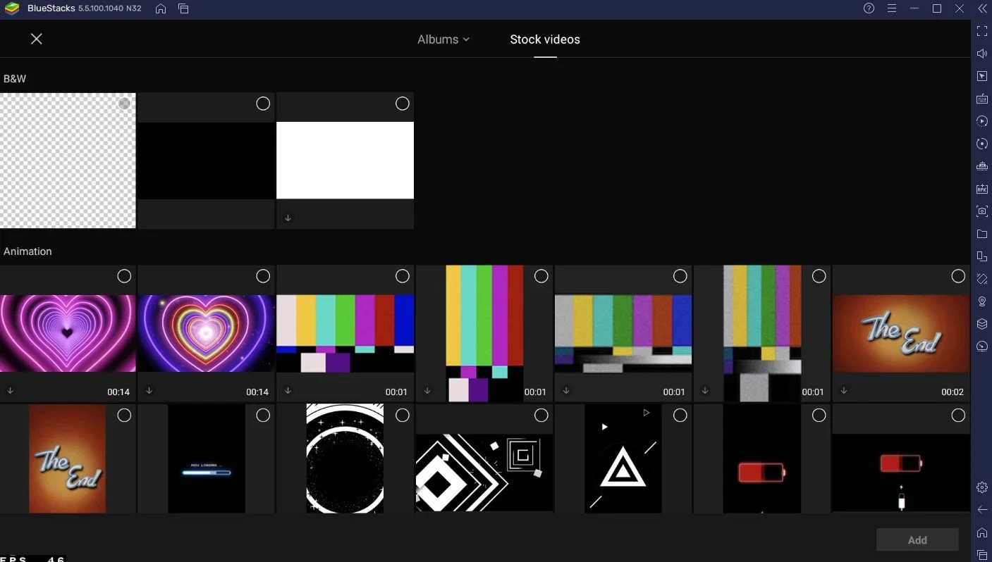From here, you have the option to import videos or photos which are saved in your BlueStacks library, or download stock videos for your future project.