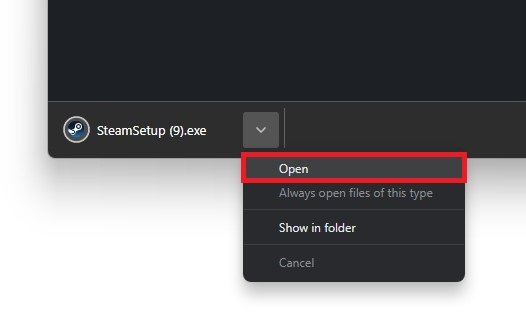Double-click the Steam Setup installer and follow the install wizard to install the launcher to your system. This should only take a minute to complete.