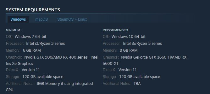 In case the download is not starting, you will have to use a VPN service as there are some download problems for the game at the moment. Below, you can preview the minimum and recommended system requirements to run the game. Overall, it will take about 120GB on your system.