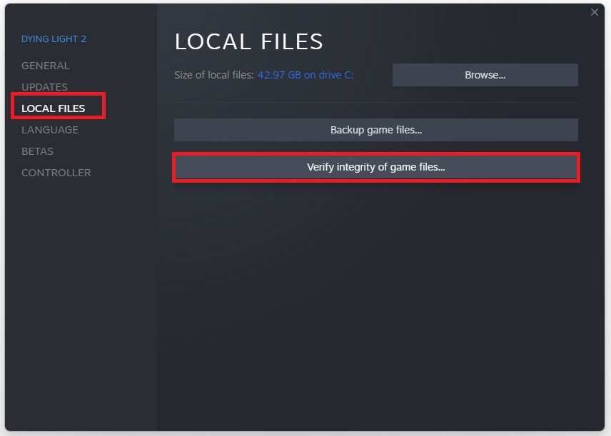 Dying Light 2 > Local Files > Verify Integrity of game files