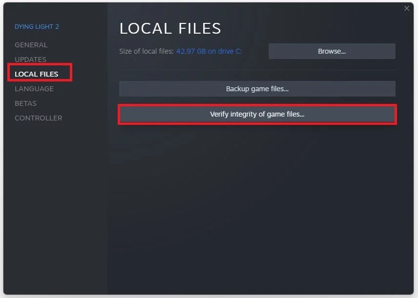 Dying Light 2 Properties > Local Files > Verify Integrity