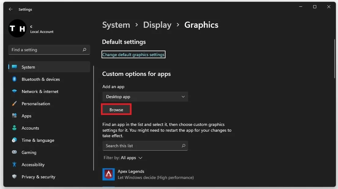 Graphics Settings > Graphics Preference > High Performance