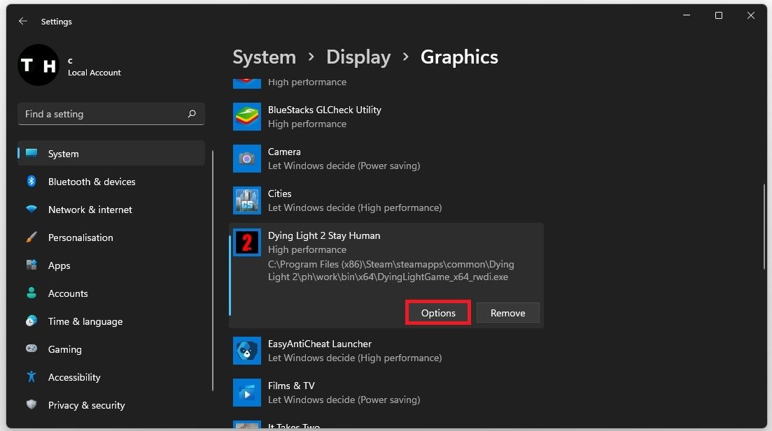 This will add Dying Light 2 to the list below. When selecting Options for Dying Light 2, make sure to set the Graphics preference to High performance, which in most cases, will take advantage of your graphics processor to help run the game on your system.