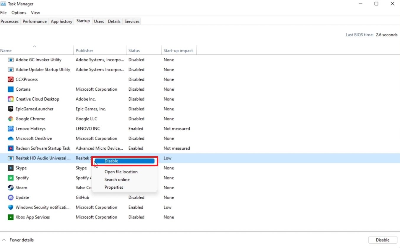 Task Manager > Startup