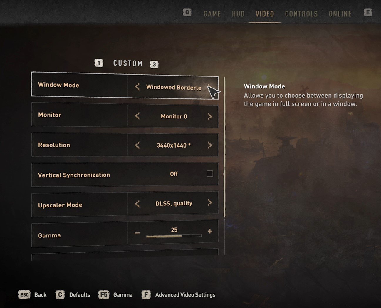 Launch Dying Light 2 and navigate to your in-game settings. In the Video tab, set the Window Mode to Windowed Borderless. Below, change your Resolution to your native monitor resolution, which is the one marked with a star.
