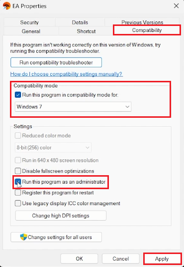 Modifying the compatibility settings can make the EA app more compatible with your Windows version, thereby resolving launch issues. The article walks you through how to adjust these settings for Windows 7 compatibility.