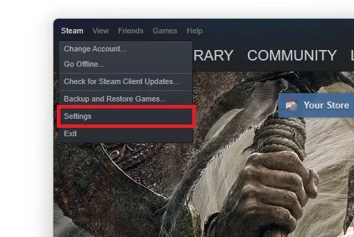 Navigate to your Steam settings. Click on Steam on the top left and then select Settings.