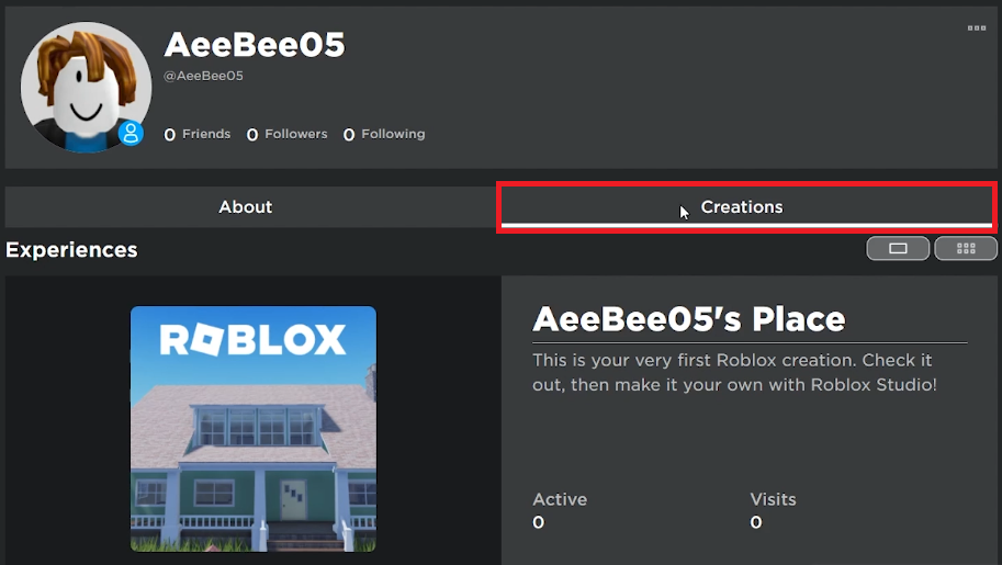 Switch tabs to 'Creations,' showcasing a list of your gaming masterpieces.