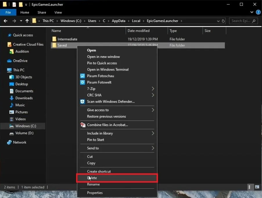 This PC > Windows(C:) > User > AppData > Local > EpicGamesLauncher