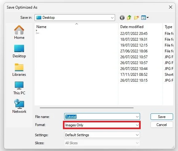 Save > Format > Images Only