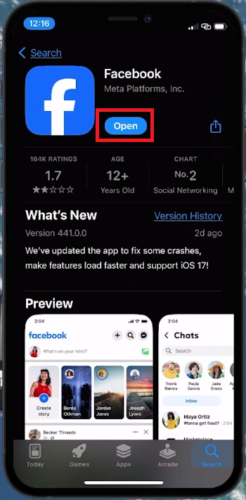 Reinstall the App: Open the App Store, search for Facebook, and tap the download icon to reinstall the app. This fresh install should fix any data corruption issues.