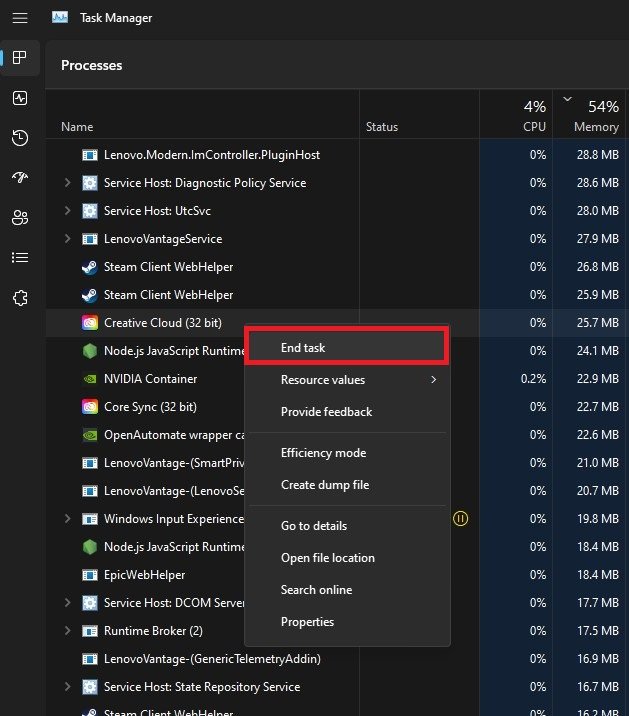 In the Processes section, prevent any application from running that could change your game files or show an overlay while playing the game. In my case, this would be CCleaner, Discord, or Teams. Don’t end processes from running, which could break your operating system.