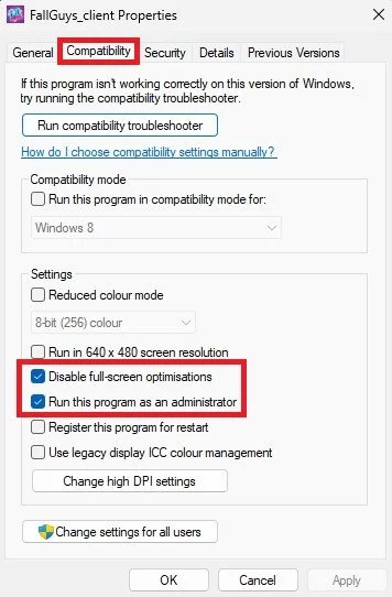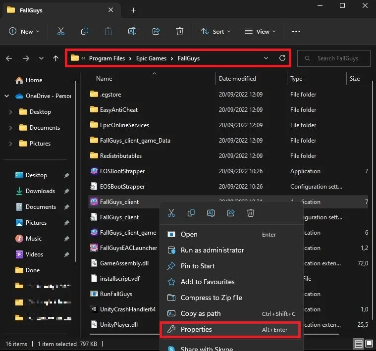 Locate the FallGuys_client.exe application. Right-click the application and navigate to its properties.