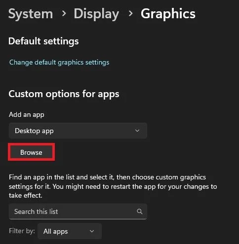 In your display settings, select Graphics under Related Settings. Here, you can choose applications and games which will use a custom graphics preference for your graphics card to help launch and run Fall Guys on your system. Click on Browse, which will open up your file explorer.