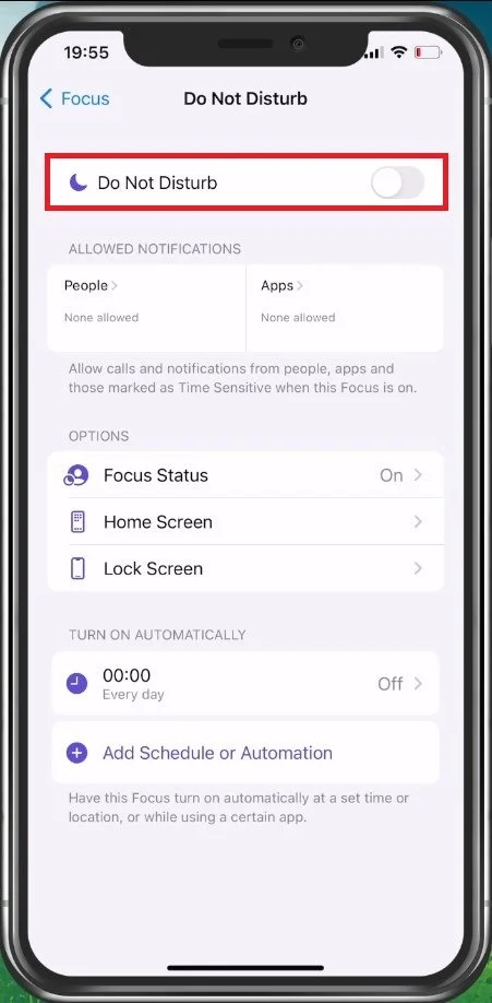 Tap on Do Not Disturb and make sure that this option is disabled. The same goes for your Sleep and Work Focus Mode.