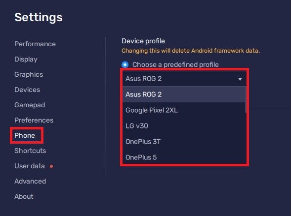 As a last resort, you will have to use a different device to install Fortnite. If you want to play on an emulator, such as BluStacks, you can change your device in your Phone settings. Here, set your device to Asus ROG 2 or to one of the Samsung Galaxy models to make sure that your device is supported to download and play Fortnite.