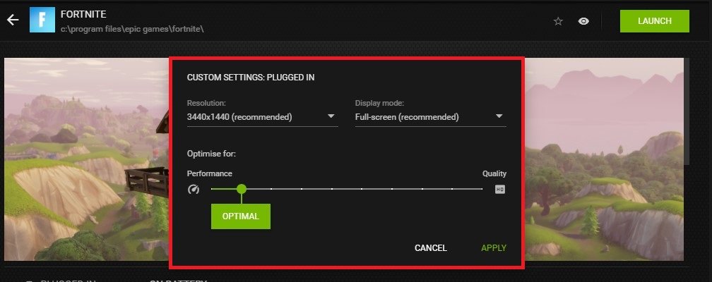 GeForce Experience > Home > Fortnite Details