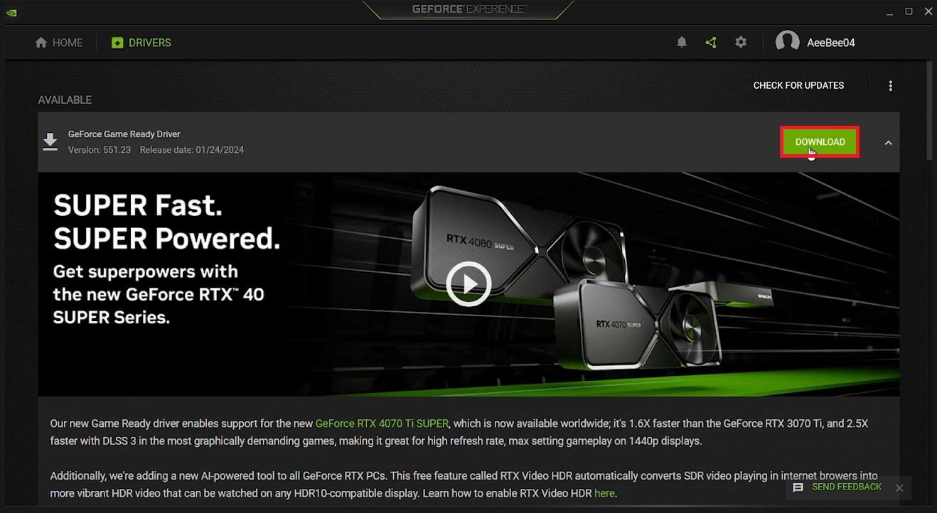 GeForce Experience > Drivers > Download