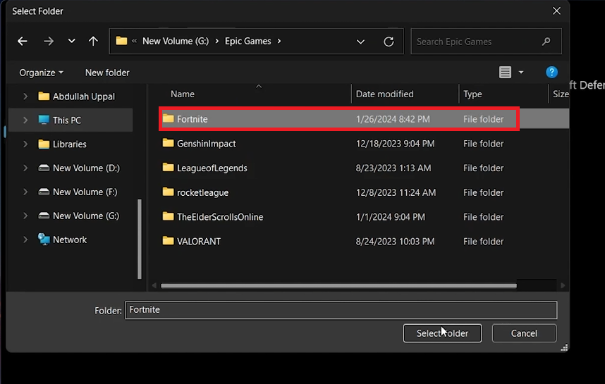 1. Locate the Fortnite Folder: