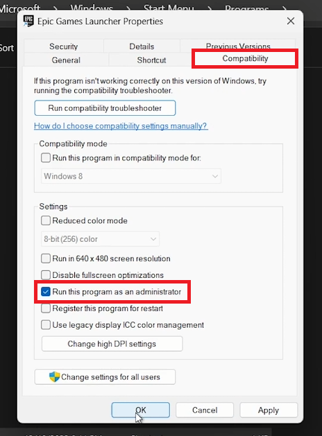 Adjust Compatibility Settings: Go to the 'Compatibility' tab and check 'Run this program as an administrator.'