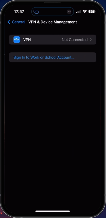 When this is done, open up your device settings. On iOS devices, navigate to the General section and tap on VPN & Device Management. Make sure to disable any VPN or proxy connection when trying to load Free Fire MAX or log into your account. A VPN can be handy, but it can also worsen your connection when trying to play games.