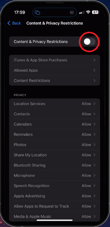 Lastly, content and app restrictions might prevent you from loading the game properly. Head back to your main settings and tap on Screen Time when using an iOS device. Select Content & Privacy Restrictions. Make sure to disable all restrictions to troubleshoot where this problem originates. You also want to disable app restrictions for Free Fire MAX or gaming on your device. This will fix the problem when Free Fire is not loading on your device