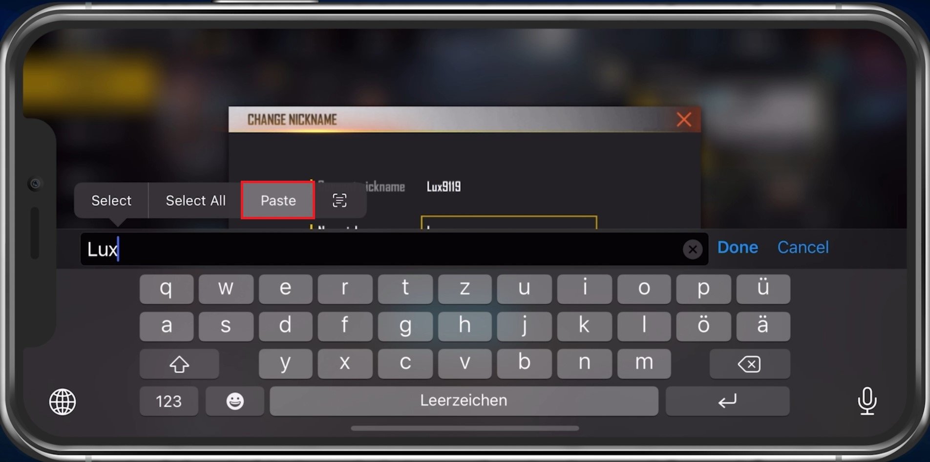 It will look like you can’t paste the character behind your name, but it should work fine when changing it. You can also use other special characters if you want to, which will prevent the nickname already exists error, as it has to be a unique username to use it.