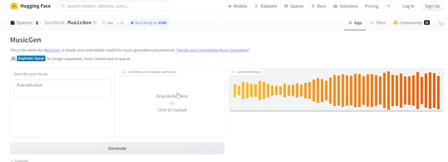 Experience the joy of creating your own tunes with MusicGen on Hugging Face, a tool designed to generate music with AI technology. As a music aficionado seeking the perfect tune for your project that's both copyright-free and customized to your taste, this is the place for you.