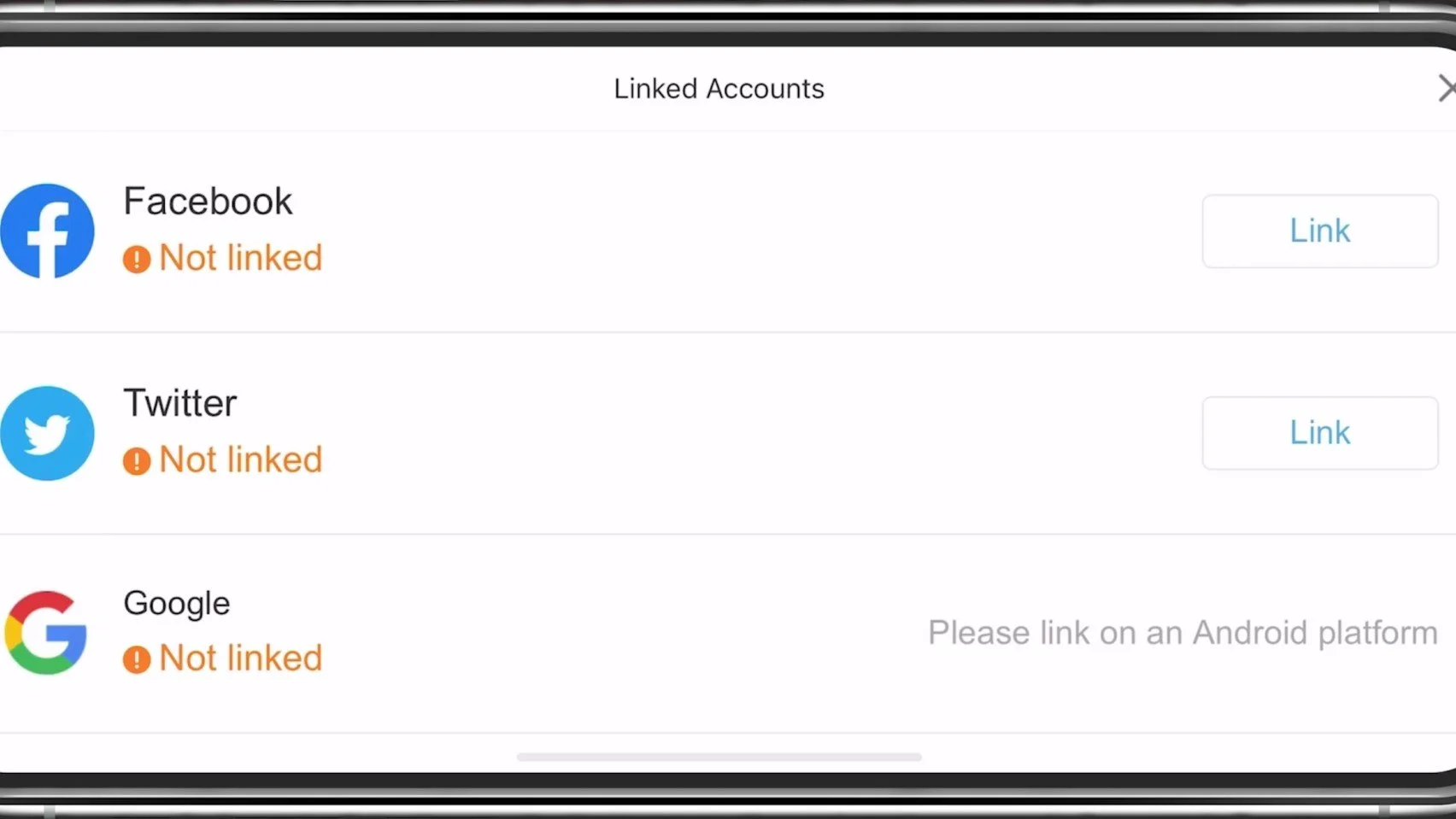 Tap on Linked Accounts. You can link your Facebook, Twitter, Google, Apple, Game Center or PlayStation Network account.
