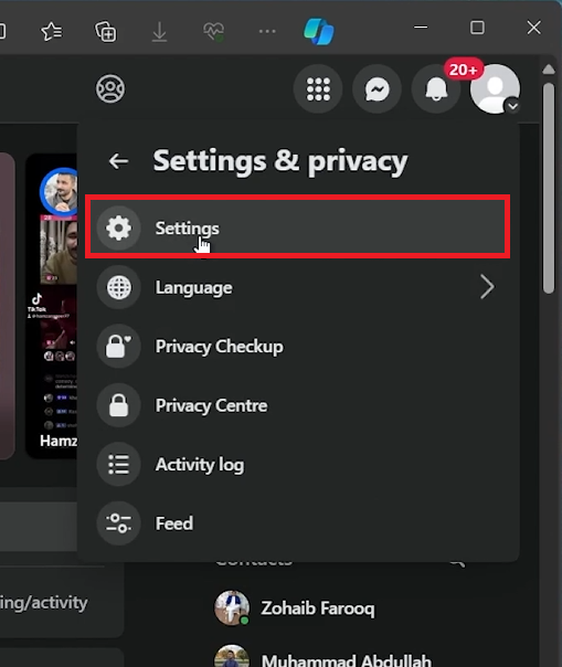 Go to Settings: Select 'Settings & Privacy' from the dropdown menu, then click 'Settings' to access your account settings.