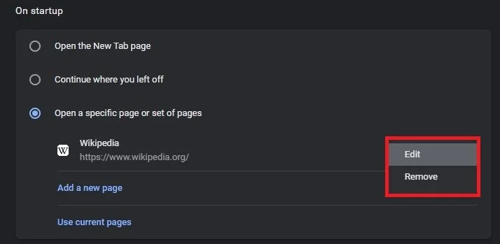 Click on the burger menu for each page to edit its URL or to completely remove it. In case you are using the mobile app version of Google Chrome and you’re signed in to the same account, then these settings will transfer over to your other devices. You can also change all of these settings on the mobile version.