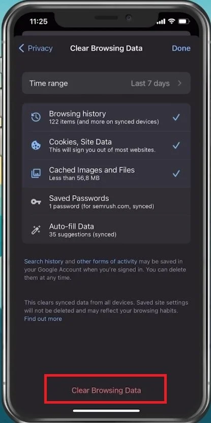 You have the option to select what you’d prefer to delete. Set the time range to your liking before tapping on Clear Browsing Data, which will take a second to delete your browser cache.