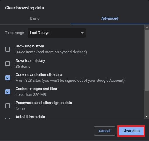 If this did not help you, then clear your recent browser history and cache. While in your settings, look up Cookies and click on Clear browsing data. Here, clear your Cookies and other site data, as well as Cached images and files for the last 7 days.