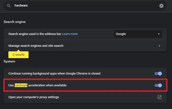 Search for Hardware Acceleration. Under System, make sure to disable the Use hardware acceleration when available option. In case it’s already disabled on your end, then make sure to enable it for now to see if this fixes your Google Chrome launch issues. This will allow your graphics card to support your CPU when running the browser on your system and can prevent performance issues in the future.