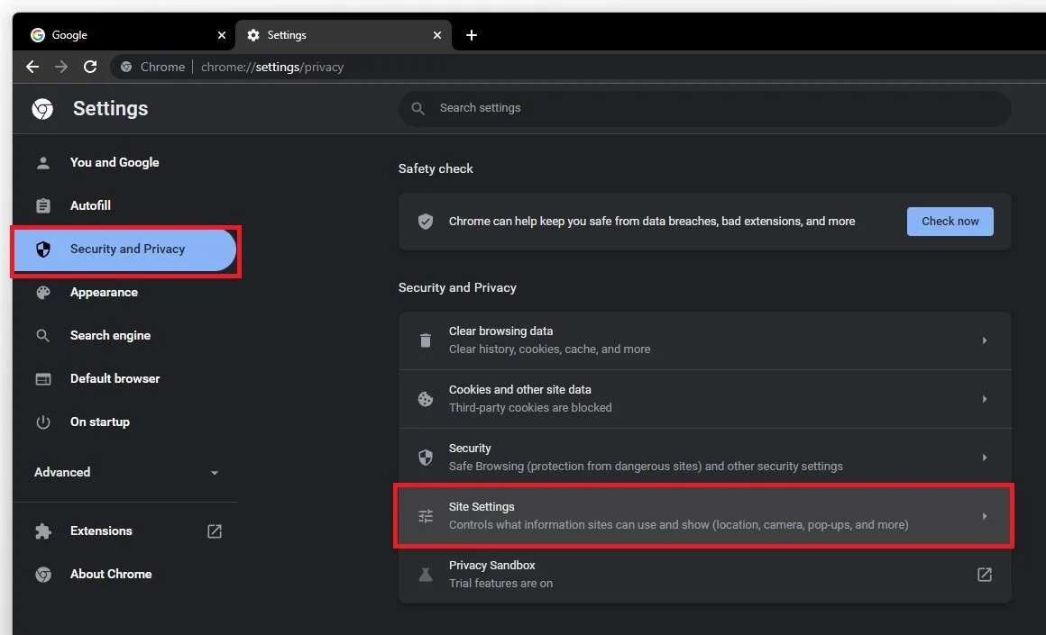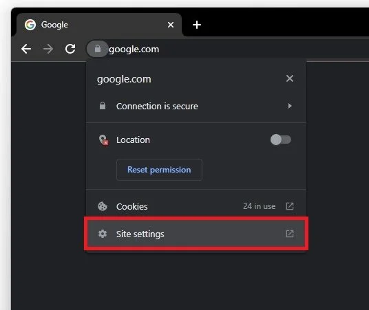 If you still see pop-ups from websites after disabling the pop-up option, you might still be subscribed to the notifications of that page. To disable those pop-ups, navigate to the site you are getting notifications from and click the lock icon next to the URL. Select Site Settings.