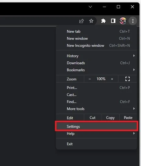 To change your default pop-up and redirect settings, open Chrome and click on the burger menu icon on the top right to access your settings.