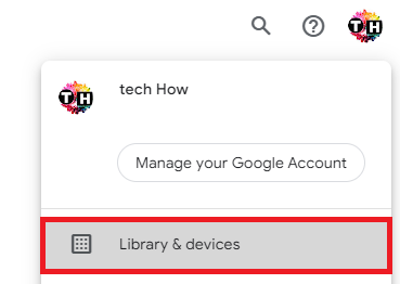 Start by clicking your profile picture, situated at the top right of your screen. From the dropdown menu, choose "Library and Devices".