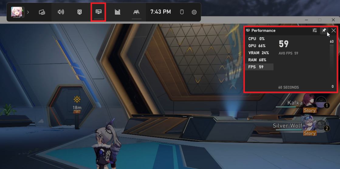 You can use an FPS counter to monitor your frame rate during gameplay. One popular option is the built-in performance widget in the Windows Game Bar, which can be accessed using the Windows Key + G shortcut. This widget also lets you monitor CPU, GPU, VRAM, and RAM usage.