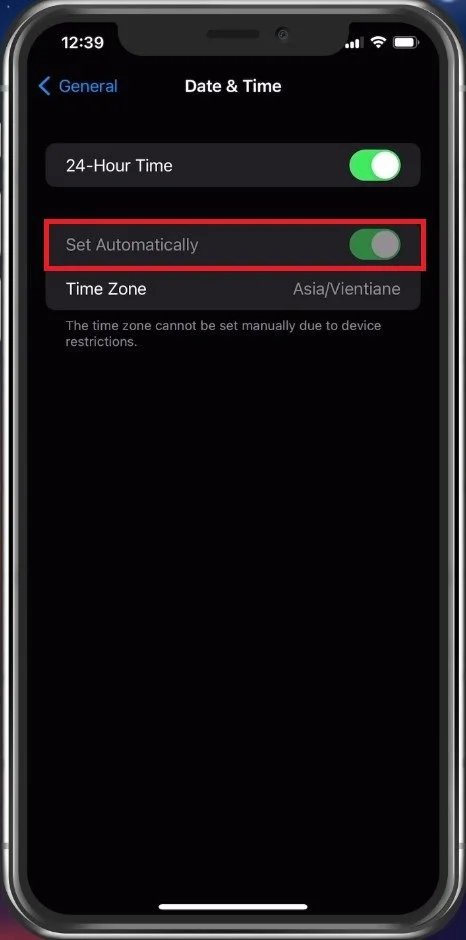 Next, in your General settings, tap on Date & Time. Here, make sure to toggle the Set Automatically option on. This will ensure that your current device settings do not cause the iMessage or FaceTime activation error.
