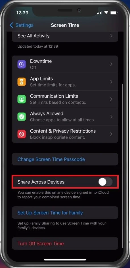 When using other devices with the same Apple ID account, disable the Share Across Devices option.