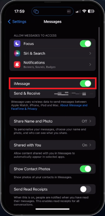 Next, navigate to your iPhone's settings. Within the "Messages" settings, ensure that the "iMessage" feature is activated and that the "Send & Receive" option is configured with your primary phone number. By double-checking these settings, you can ensure proper functioning of iMessage and prevent issues with pictures not loading or displaying.