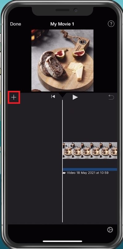 Open up your iMovie project and ensure you have some content in your timeline. Tap the plus (+) icon to add new media to your timeline.